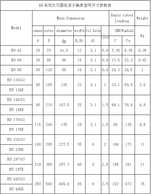 三、RU系列交叉圓柱滾子軸承