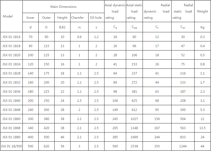 JSX系列交叉圓柱滾子軸承型號尺寸參數(shù)
